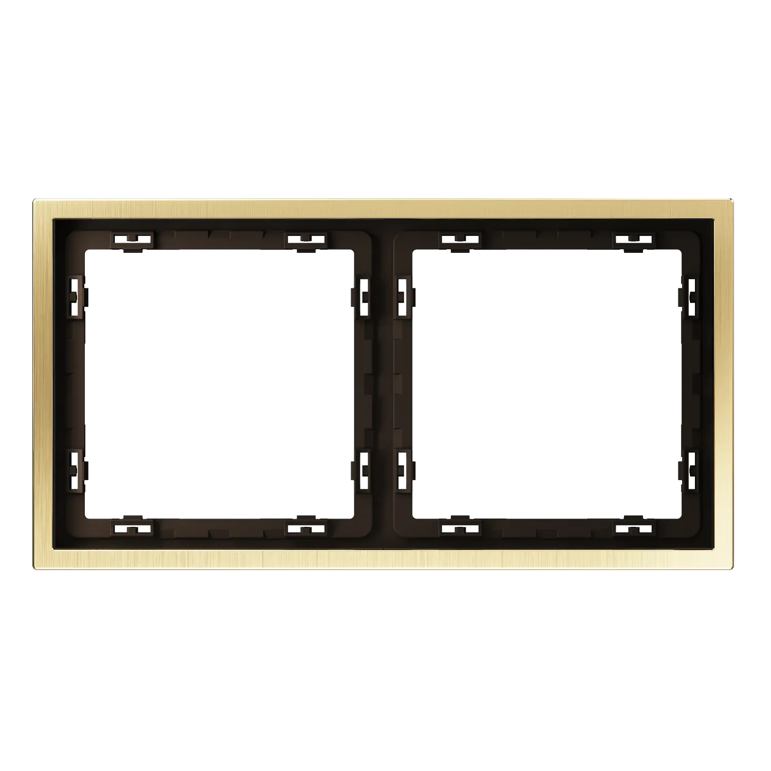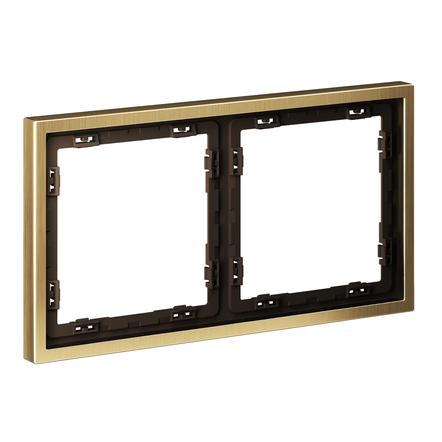 Все элементы в цвете «латунь» формируют непрерывную линию без визуальных разрывов. Смотрите также рамки цвета «платина» для холодной элегантности или «никель» для сдержанных интерьеров с характером.