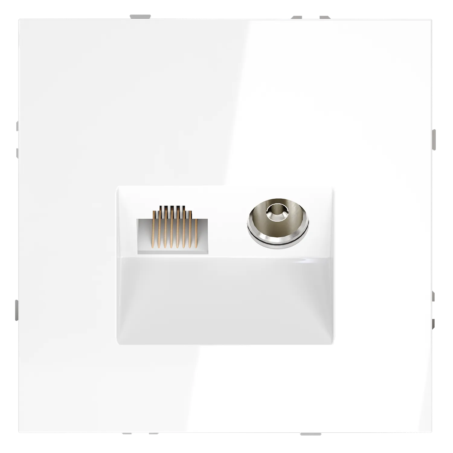 Это свет, отражённый в каждой детали. Розетка S70 TV+RJ45 VOLTUM в белом глянцевом исполнении превращает техническую точку подключения в элемент воздушной лёгкости: антенна и гигабитный интернет скрыты за фасадом сияющей чистоты, где цифровая стабильность встречается с визуальной гармонией.