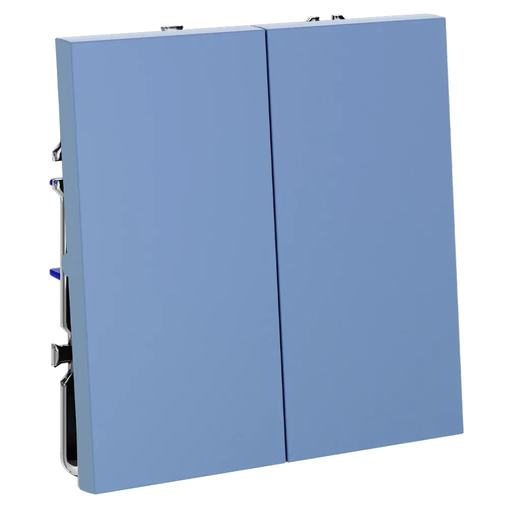 Двухклавишный выключатель самовозвратный VOLTUM S70 в цвете «деним» — это современное и функциональное решение для одновременного управления двумя независимыми автоматизированными системами, такими как жалюзи и рольставни, ворота и шторы, вентиляция и сигнализация. Благодаря механизму самовозврата, каждая клавиша автоматически возвращается в исходное положение после нажатия, обеспечивая импульсное (кратковременное) управление без фиксации — идеально для систем, требующих точного и безопасного сигнала.